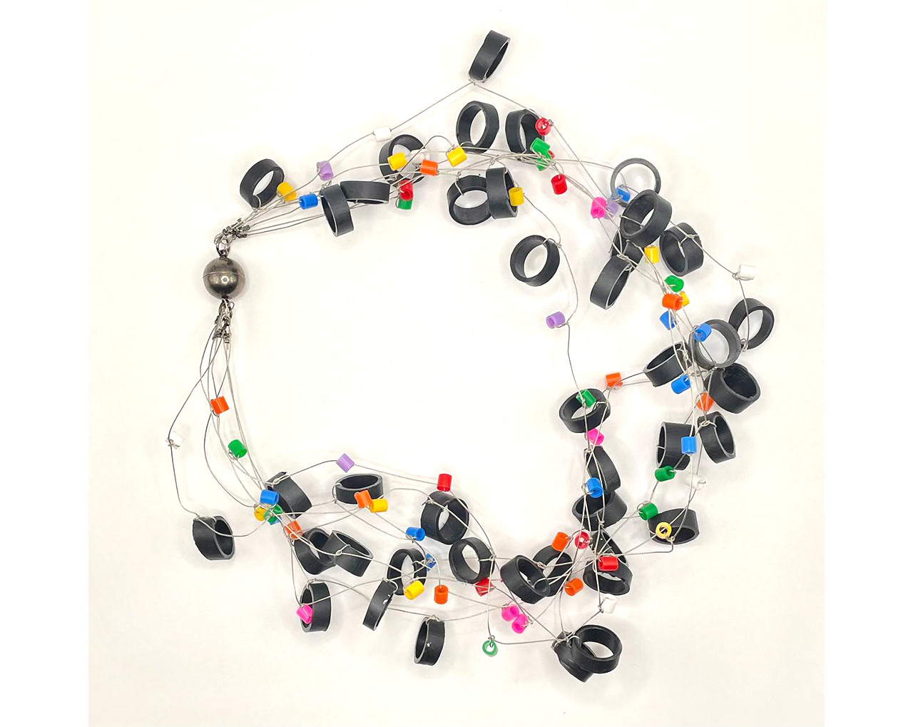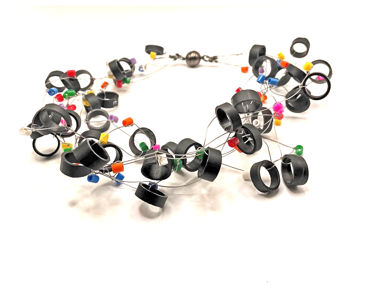 Handcraft Necklace made of recycled Plastic Tube (Water pipeline) and Pyssla beads